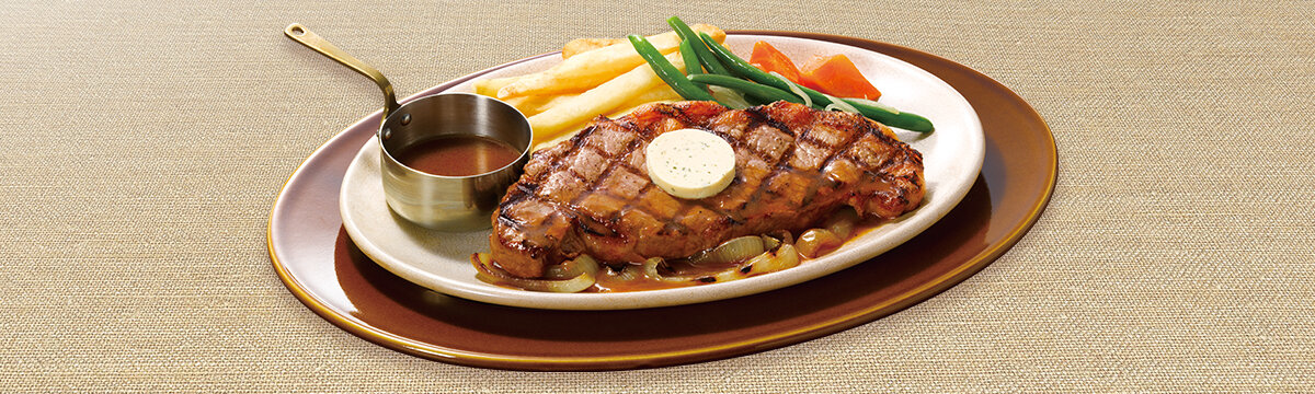 ※ステーキは焼成前のグラム数です。※写真はドミグラスバターソースです。