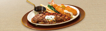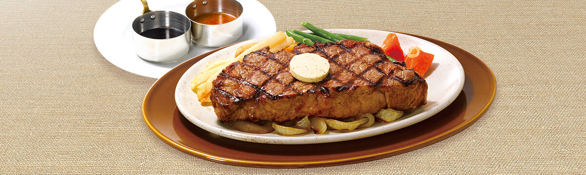 アンガスサーロインステーキの肉と脂の旨み、厚切りならではの程よい噛み応えとボリューム感をご堪能ください。