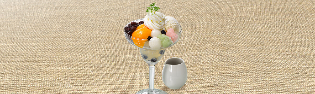 ホイップクリームをトッピングし、カクテルグラス仕立ての華やかなスタイルとしてリニューアル。お好みで別添えの黒蜜をかけてお楽しみください。
